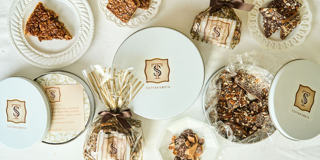 Since its founding, ToffeeSmyth has expanded beyond its signature Chocolate Pecan Toffee to include Pecan Toffee Bars, Lemon Squares, and a classic Southern Pecan Pie, each crafted with the same care, quality, and charm that define the brand.